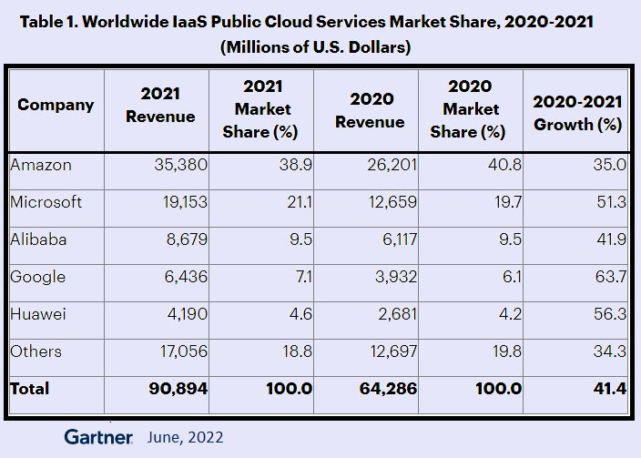 02/06/2022 - Gartner Says Worldwide IaaS Public Cloud Services Market Grew 41.4% in 2021